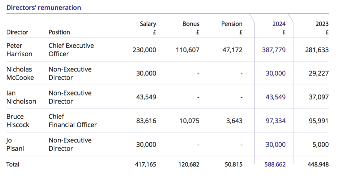 The chief exec’s salary and the chairman’s fee both advanced a useful 17%.