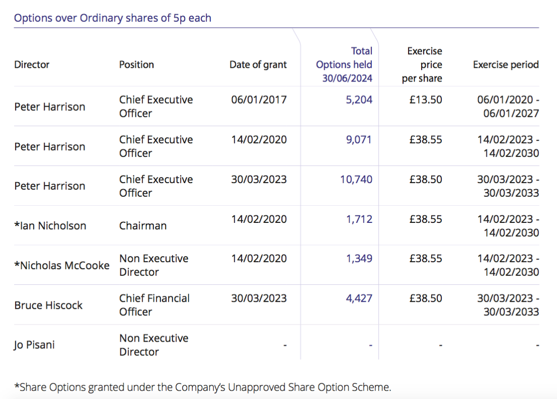 The options held did not change during the year. But the chief exec subsequently exercised his 5,204 options at the £13.50 price during April 2025.