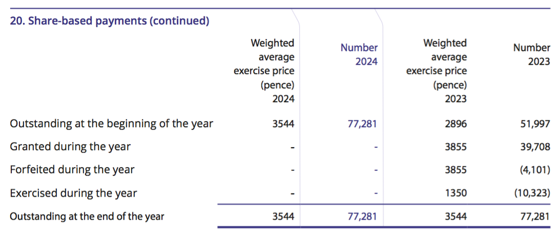“The number of staff and officers holding share options at 30 June 2024 was 16 (2023: 16). The share options have been issued to underpin staff service conditions.”