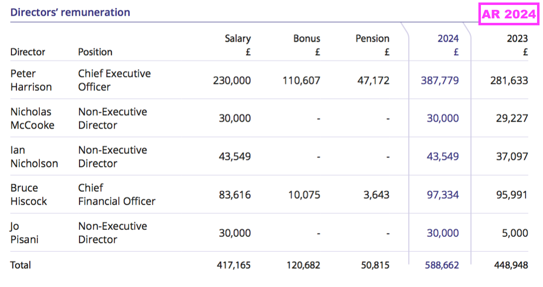 - Given the preceding FY reported earnings of £8m, I do not have any real quibbles with board pay: