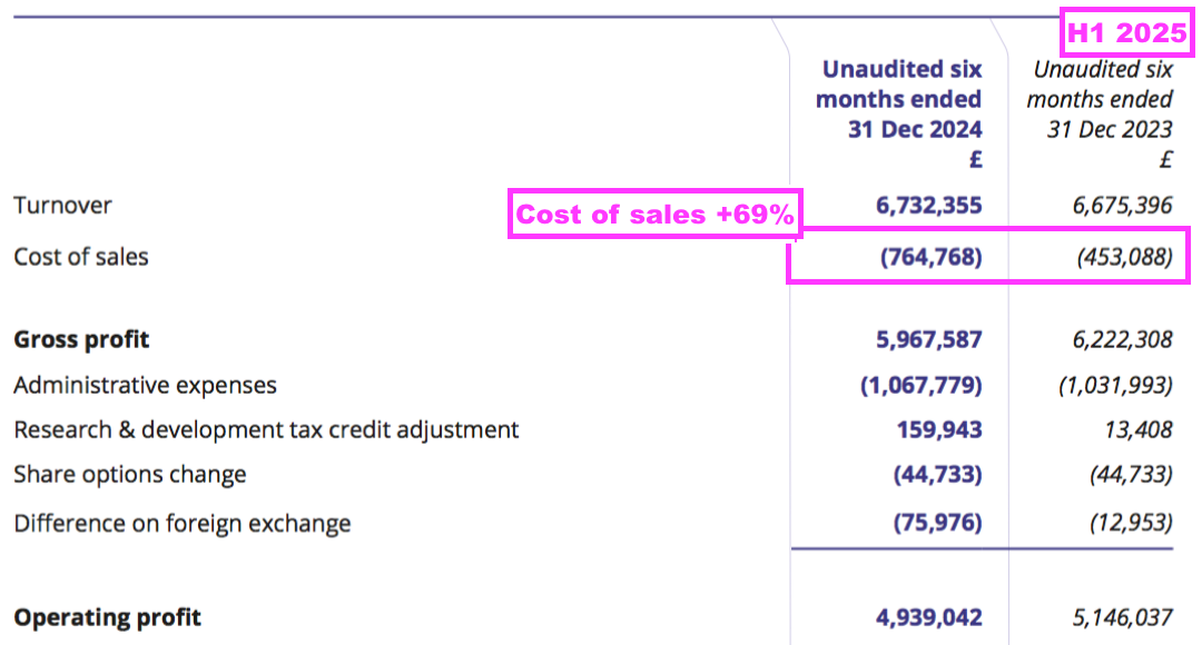 - H1 cost of sales soaring 69% suppressed both gross profit and operating profit: