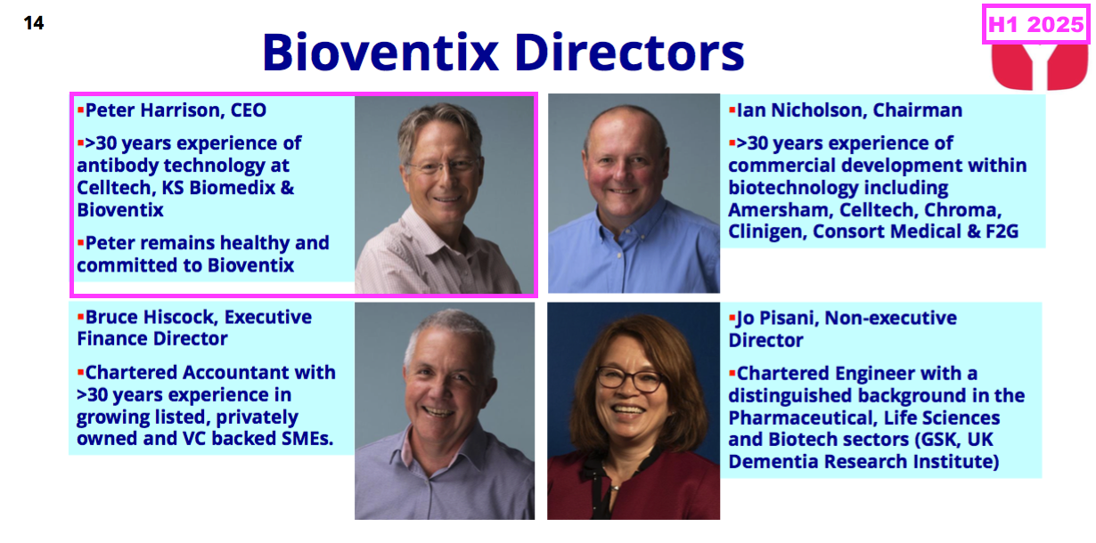 [FY 2024] “Bioventix has a very flat management structure. Interaction between the Executive Directors and staff is a daily event and very much part of the culture of the Company.“