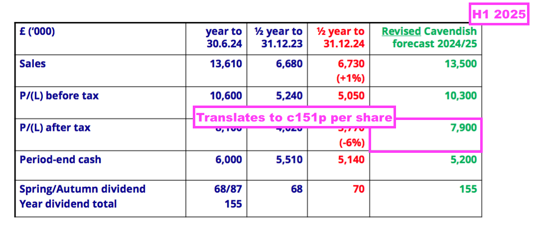- This H1’s broker forecasts indicated possible FY 2025 earnings of 151p per share: