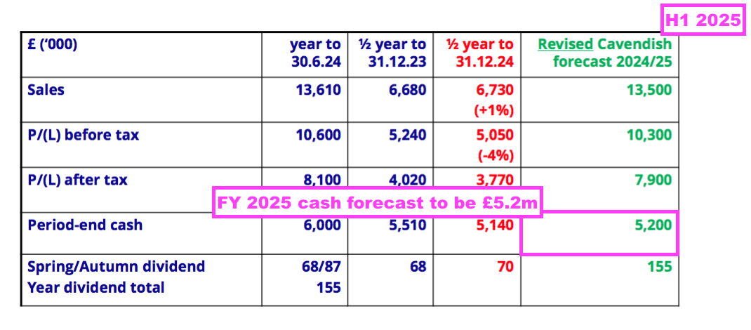 - Mind you, this H1’s broker forecasts indicate FY 2025 cash at £5.2m: