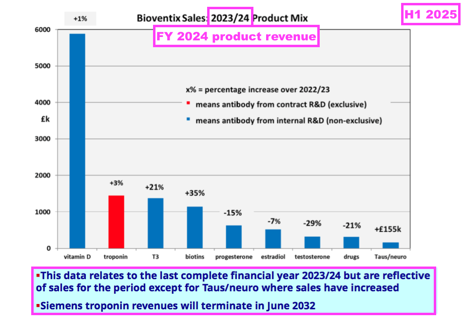 - The preceding FY falling below expectations was due partly to a “customer error in the incorrect application of a historic royalty percentage“, which led BVXP to admit royalties from its troponin antibody had been “overreported and overpaid” since FY 2022 (see Troponin and other antibodies).
