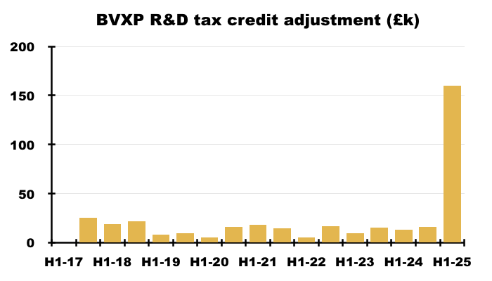 - BVXP discloses its R&D expenditure within only its FY results. At the last count the R&D amounted to approximately £1m per annum: