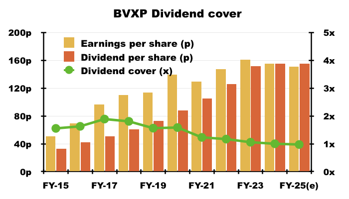 - This H1 showed BVXP’s broker projecting a maintained 155p per share dividend for FY 2025: