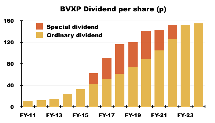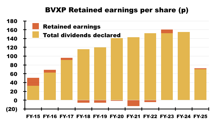 - Since FY 2015, BVXP has in fact declared aggregate earnings of £12.44 per share, of which £12.35 were distributed as ordinary or special dividends and the remaining 9p per share retained within the business: