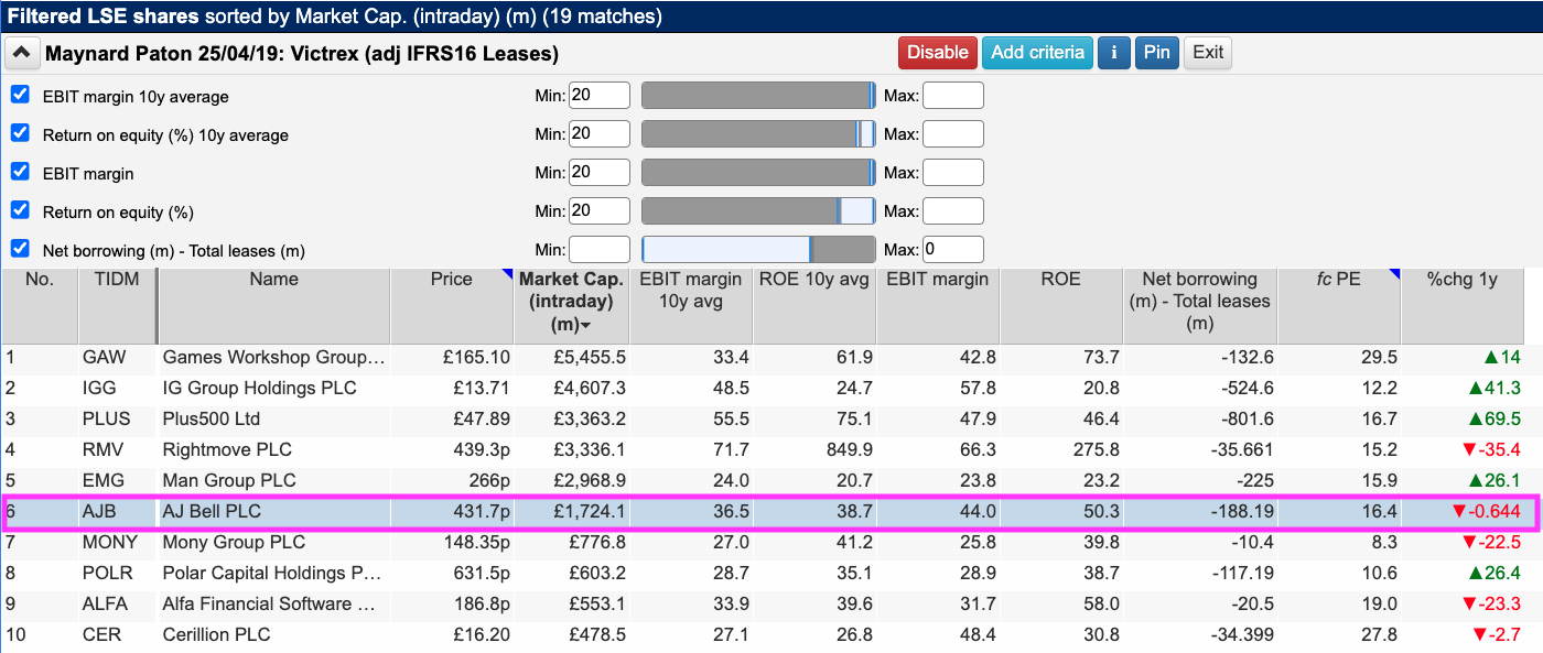 To narrow the field down further, I also sought companies that carried net cash (i.e. net borrowings excluding IFRS 16 finance leases of less than zero):